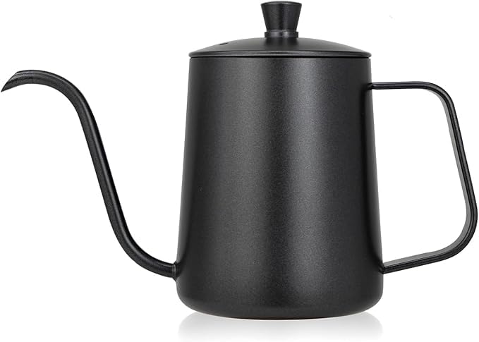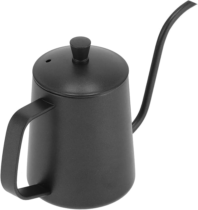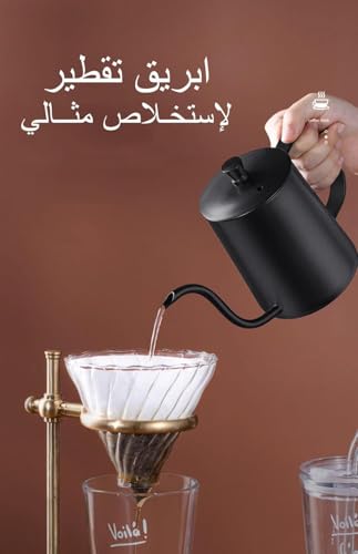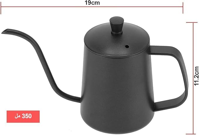 Generic - وعاء تقطير القهوة من الفولاذ المقاوم للصدأ سعة 350 مل من انفين | وعاء تقطير القهوة 5mm برقبة طويلة وفتحة صب 5 ملم مطلي بطلاء تفلون أسود | غلاية قهوة مثالية لتقطير وترشيح القهوة المتخصصة