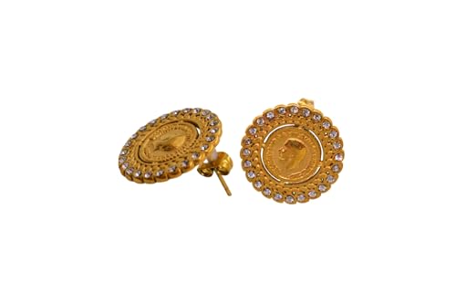 Generic - اقراط مرصعة باحجار كريمة من الستانلس ستيل للنساء - لون ذهبي