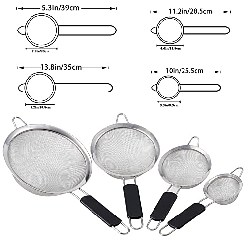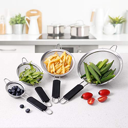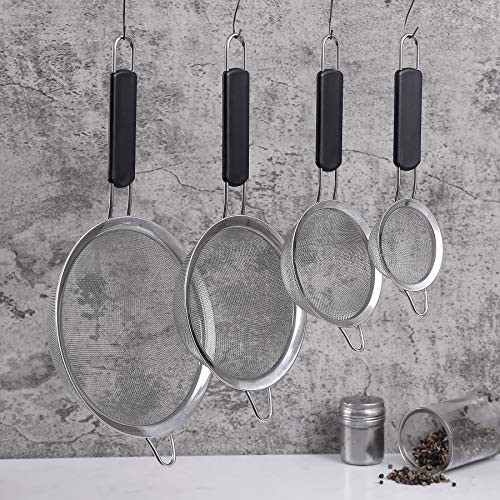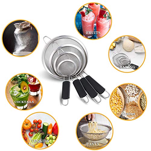 - 【مجموعة من 4 مصافي وقيمة جيدة】تستخدم 4 مصافي بأحجام مختلفة لتصفية الأشياء بأحجام مختلفة لتلبية احتياجاتك اليومية. مثل المعكرونة والنودلز والكينوا والأرز والخضروات والفواكه والقهوة وما إلى ذلك. إنه خيار رائع للمطبخ المنزلي اليومي والمطاعم والفنادق وما إلى ذلك.