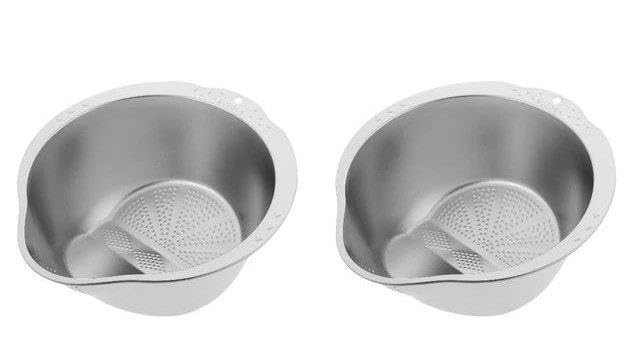 Generic - صُممت صفاية استانلس بقاعدة مزدوجة لتسهيل عملية التصفية بطريقة آمنة ومستقرة، لتساعدك على تحضير أطباقك المفضلة بسرعة وكفاءة مع لمسة عصرية للمطبخ. (فضي 2 قطعه)
