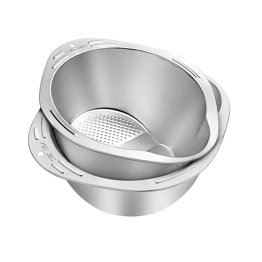 - 🥦🍎 تصفية مثالية للخضروات والفواكه: بفضل الفتحات الدقيقة والمتساوية، تضمن الصفاية إزالة الماء الزائد بسرعة مع الحفاظ على الأطعمة طازجة ونظيفة تمامًا.