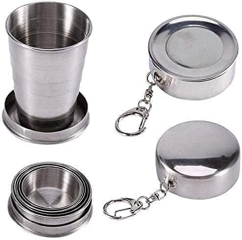 Generic - كوب قابل للطي من الفولاذ المقاوم للصدأ بتصميم محمول وقابل للطي، مج بتصميم تلسكوبي بغطاء مزود بسلسلة للسفر والتخييم والأماكن الخارجية والرحلات
