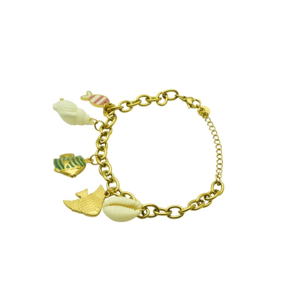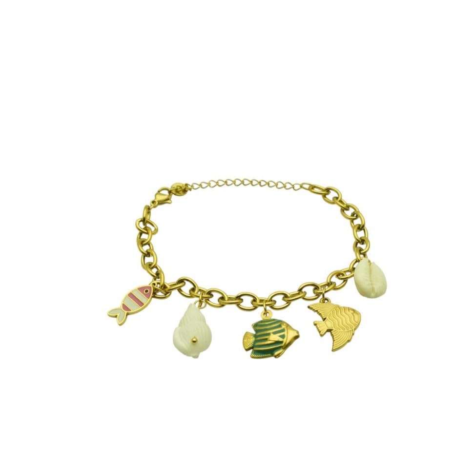 Generic - سوار ملون من الستانلس ستيل بدلاية على شكل حياة بحرية للنساء - ذهبي
