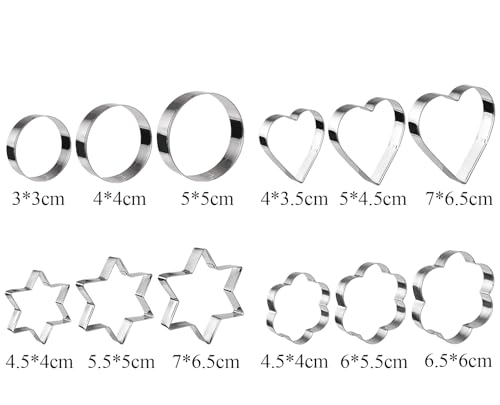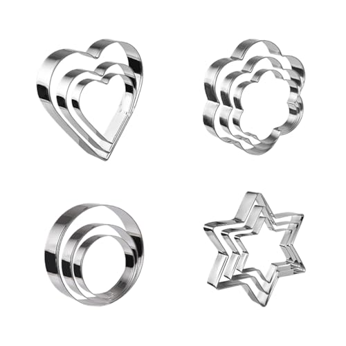 xianxikaitech - مجموعة قطاعات بسكويت من الستانلس ستيل مكونة من 12 قطعة - اشكال دائرية وقلب ونجمة وزهور لخبز البسكويت والمعجنات وتزيين الكيك - ادوات تقطيع البسكويت وقوالب المعجنات القابلة لاعادة الاستخدام للمطبخ