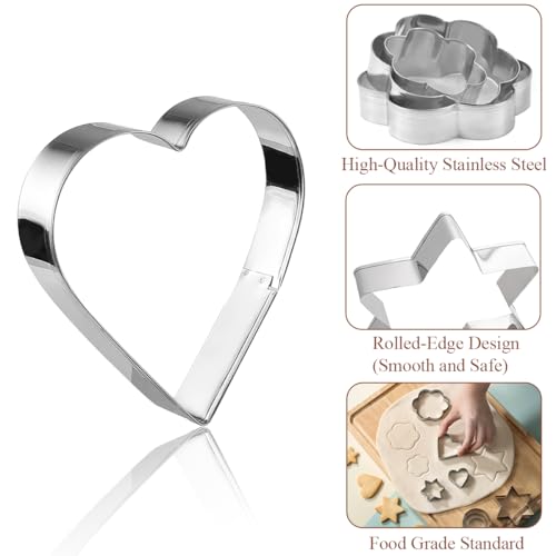 - 【هيكل من الستانلس ستيل الفاخر】 مصنوعة من الستانلس ستيل المتين، مجموعة قطاعة البسكويت هذه مقاومة للصدأ ومقاومة للحرارة ومصممة للاستخدام طويل الأمد. تتميز قطاعات البسكويت المصنوعة من الستانلس ستيل بحواف ملفوفة ناعمة لقبضة مريحة وقواعد حادة لقطع نظيفة لن تلتصق، مما يجعلها سهلة التنظيف وآمنة للغسل في غسالة الأطباق.
