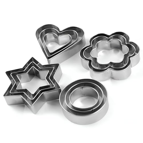 Generic - قوالب بسكويت من الفولاذ المقاوم للصدأ - مجموعة مكونة من 12 قطعة على شكل قلب ونجمة ودائرة وزهرة، رائعة لمشاريع الخبز التي تصنعها بنفسك مع الأطفال، غير سامة ومتينة للاستخدام طويل الأمد
