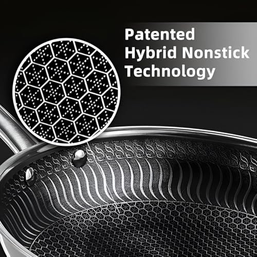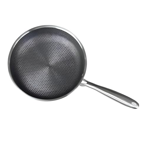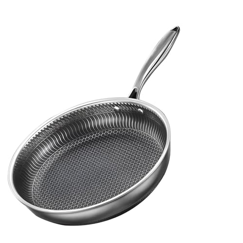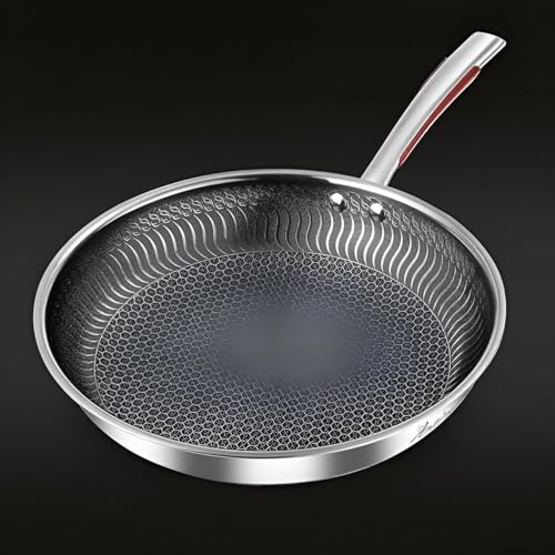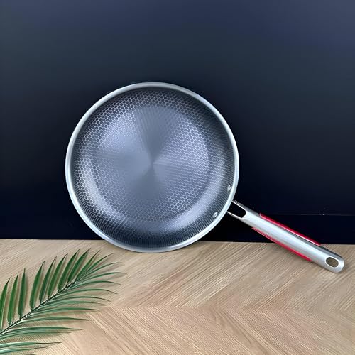 Generic - مقلاة طهي من الستانلس ستيل - نمط خلية النحل 30 سم، سطح غير لاصق، جاهزة للحث، مقاومة للخدش مع غطاء، ادوات مطبخ متينة