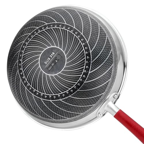- هذه المقلاة غير اللاصقة مصنوعة من الستانلس ستيل 18/8 عالي الجودة مع تصميم على شكل قرص العسل بتغطية كاملة، مما يضمن أداءً فائقًا غير لاصق. تم ترقيته بأسطح منقوشة بالليزر تحسن بشكل كبير من إطلاق الطعام وسهولة التنظيف.