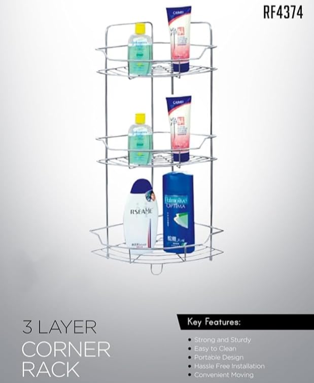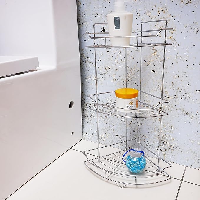 Generic - رف زاوية ستانلس ستيل، 3 طوابق، مقاوم للصدأ
