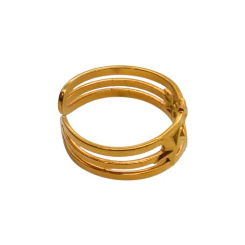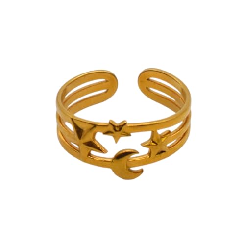 Generic - خاتم للنساء من الستانلس ستيل باشكال هلال ونجوم، مقاس واحد - ذهبي