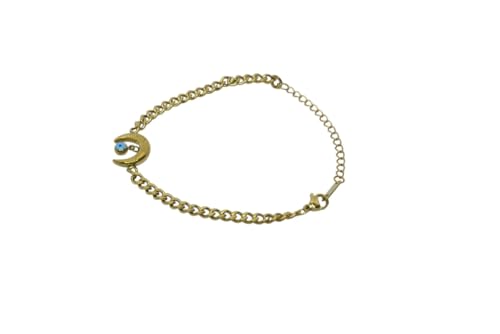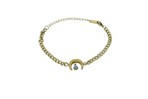 Generic - سوار من الستانلس ستيل بتصميم هلال وقمر للبنات - ذهبي وازرق
