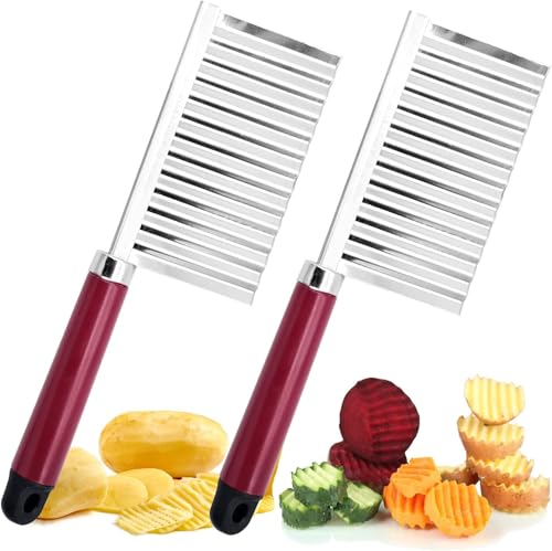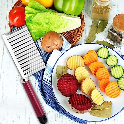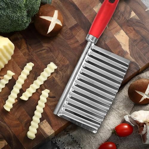 Generic - سكين التقطيع المجعد من الفولاذ المقاوم للصدأ – تصميم مميز لتقطيع البطاطس والخضروات والفواكه، قطاعة شرائح مموجة للوجبات الخفيفة وصنع مخلل الخيار – من FASHION.HOME