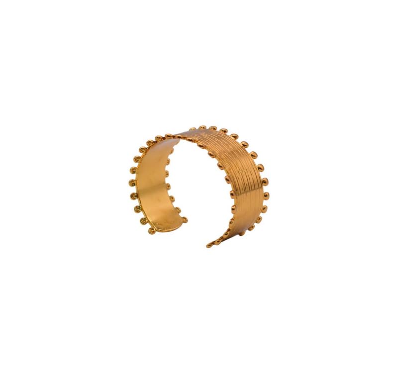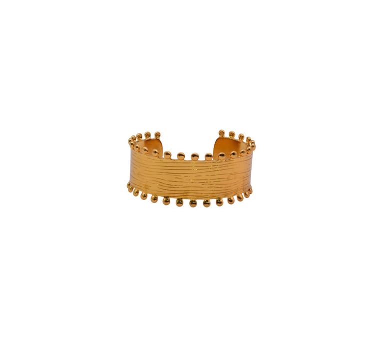 Generic - سوار عريض من الستانلس ستيل بنقوش منقوشة بسيطة وحواف خرز مزخرفة للبنات - لون برونزي