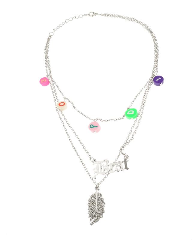Generic - سلسلة استانلس ستيل بدلاية بتصميم لطيف أنيقة 3 دور مقاس قابل للتعديل للبنات ، فضي TON-A-1282