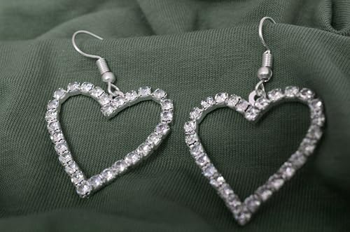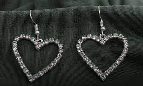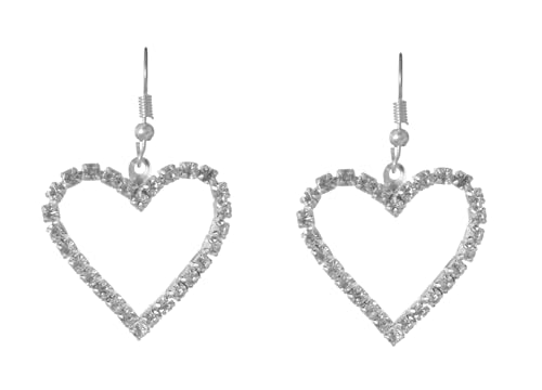 Generic - أقراط أذن استانلس ستيل بدلاية بتصميم لطيف على شكل قلب مرصع كريستال لامع لحفلات الزفات والمناسبات نسائي ، فضي TON-A-1101
