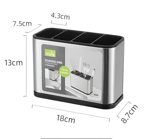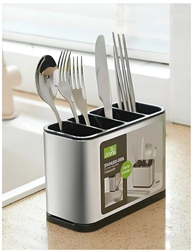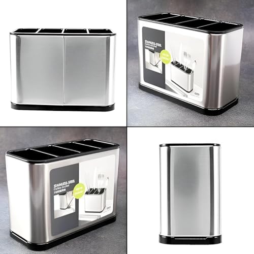 Generic - حامل أدوات مائدة من الفولاذ المقاوم للصدأ، صينية تصريف سوداء ومنظم أدوات المائدة، تصميم غير قابل للانزلاق، ومقاوم للخدش لسطح طاولة المطبخ