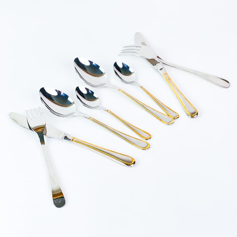 Generic - طقم ادوات مائدة من الستانلس ستيل بحواف ذهبية، 24 قطعة، تتضمن ملاعق وشوك وسكاكين، لمسة نهائية مصقولة عاكسة