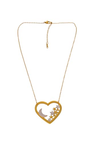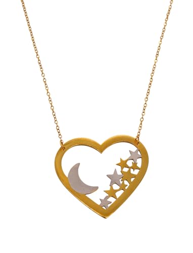 Generic - عقد بقلادة على شكل قلب من الستانلس ستيل بتصميم قمر ونجوم للنساء - ذهبي