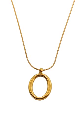 Generic - عقد بقلادة بيضاوية مفرغة من الستانلس ستيل للنساء - ذهبي