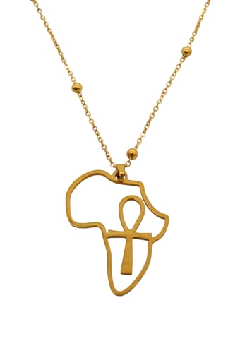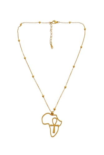 Generic - عقد بقلادة مفرغة من الستانلس ستيل بتصميم القارة الافريقية تحتوي على عقد برمز عنخ للنساء - ذهبي
