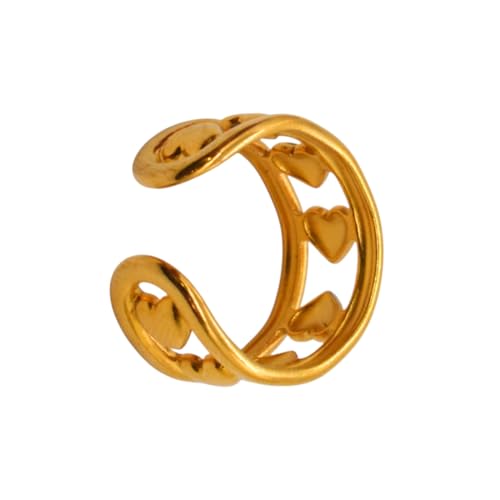Generic - خاتم من الستانلس ستيل بفتحات على شكل قلب للنساء، مقاس واحد - ذهبي
