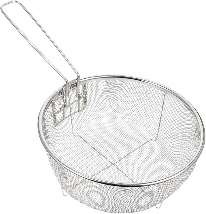 - هيكل فاخر: مصنوع من الستانلس ستيل عالي الجودة مع تصميم شبكي دقيق لتصفية فعالة ومتانة أثناء القلي العميق