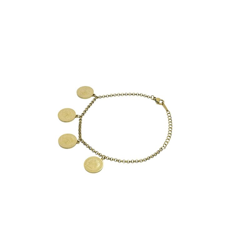 Generic - سوار مختلف من الستانلس ستيل بتصميم عملات معدنية للبنات - ذهبي