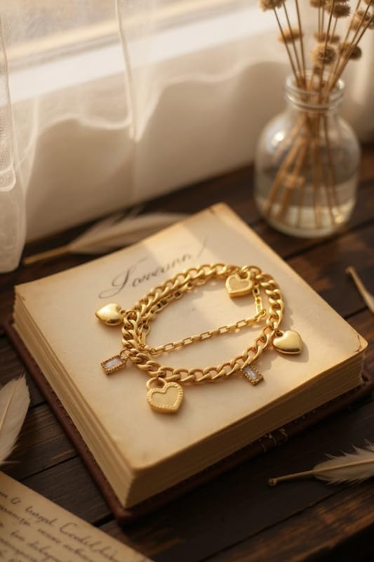 Generic - سوار بدلايات مختلفة من الستانلس ستيل للنساء - ذهبي 1899-مسبح-AR378