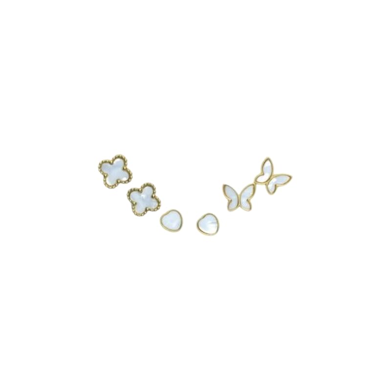 Generic - طقم اقراط مختلفة من الستانلس ستيل للبنات، 3 قطع - ذهبي وابيض
