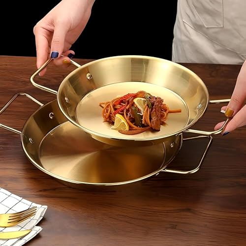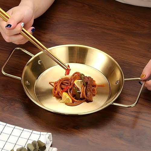 Generic - أطباق عشاء من الفولاذ المقاوم للصدأ، أطباق سلطة للحلويات، حلة صغيرة بمقبض، بولة للرامن الكوري قابلة لإعادة الاستخدام، طبق معدني للتخييم والمنزل والمطبخ (قطعة واحدة)