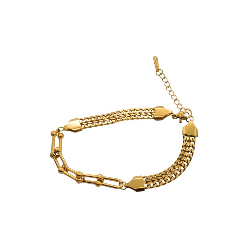 Generic - سوار سلسلة مزدوجة من الستانلس ستيل للنساء - ذهبي 1899-mesbah-AR388