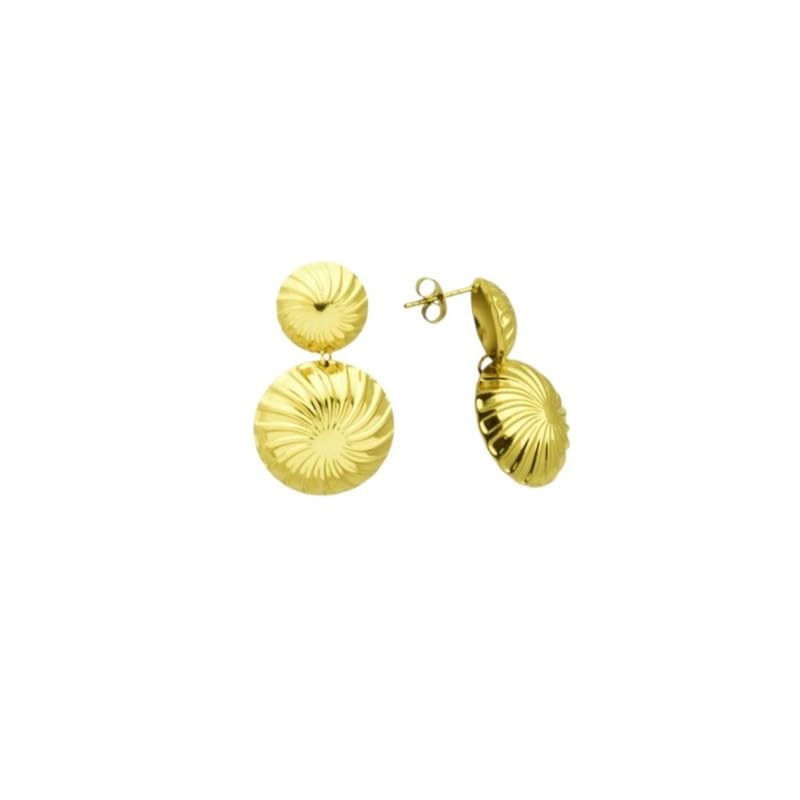 Generic - اقراط متدلية مزخرفة بدائرة مزدوجة من الستانلس ستيل للنساء - لون ذهبي