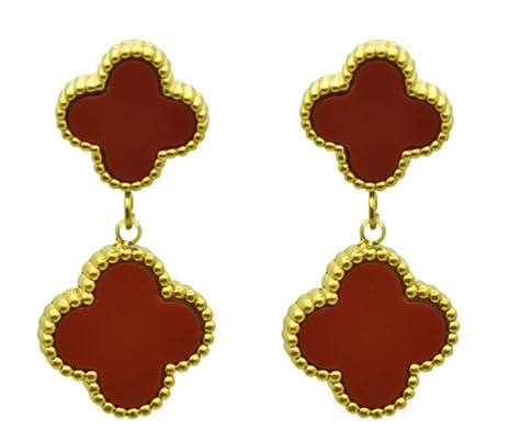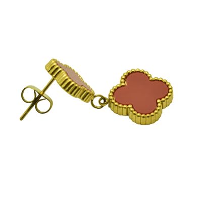 Generic - اقراط متدلية مزدوجة من الستانلس ستيل مع ترصيع خمري للنساء - ذهبي ونبيتي