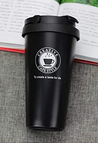 Other - مج قهوة للسفر مزدوج الجدار مفرغ ومعزول من الستانلس استيل مع مقبض - كوب حراري محمول بفتحة واسعة وغطاء مقاوم للتسريب 500 مل اسود