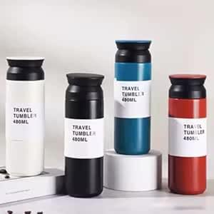 Generic - كوب سفر من الفولاذ المقاوم للصدأ مزدوج الجدار بعزل حراري، سعة 500 مل، مزود بمقبض مريح، مثالي للقهوة أو الماء أثناء التنقل، متعدد الألوان