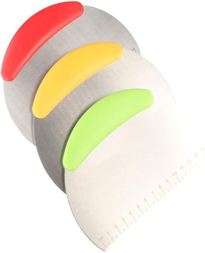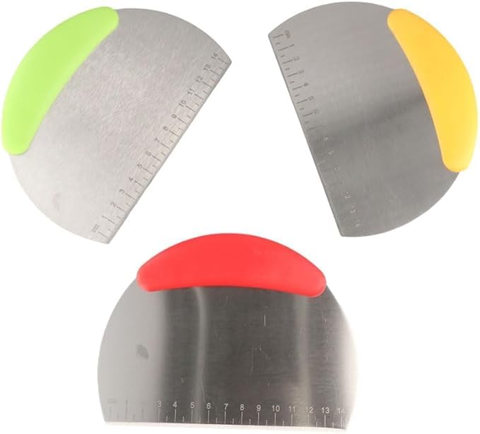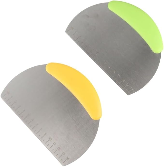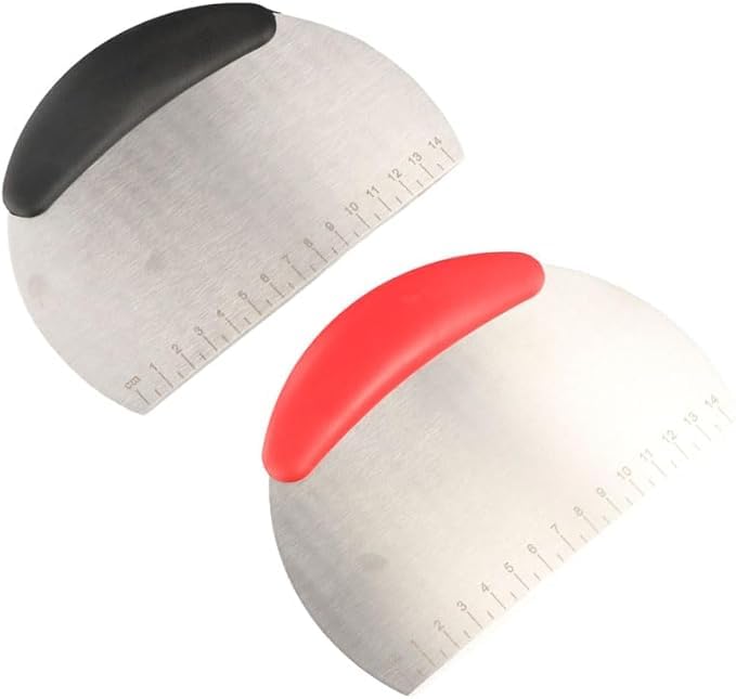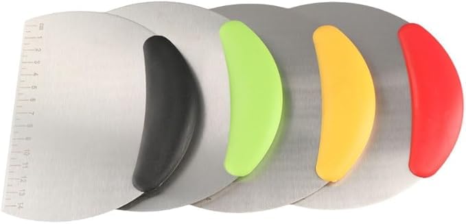 Generic - قطاعة العجائن والشرائح من الفولاذ المقاوم للصدأ ، مكشطة نصف دائرية مع مقياس، قطاعة عجين البيتزا، قطاعة عجين بمقبض بلاستيكي، مكشطة عجين متعددة الأغراض