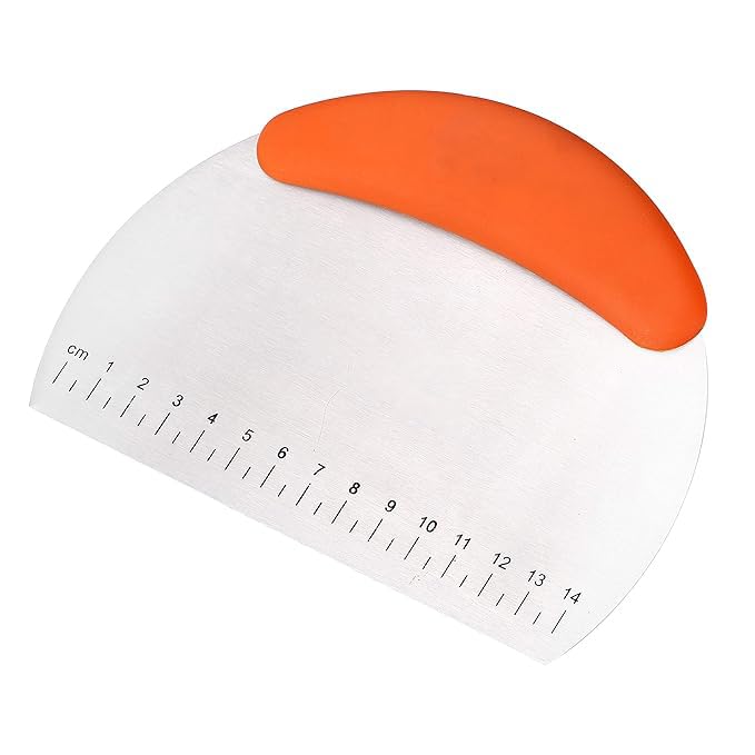 - [تصميم متدرج] تم تصميم المكشطة نصف الدائرية بمقياس متدرج للمساعدة في قياس وقص حجم العجين، مما يساعد على الحفاظ على تناسق المكونات.