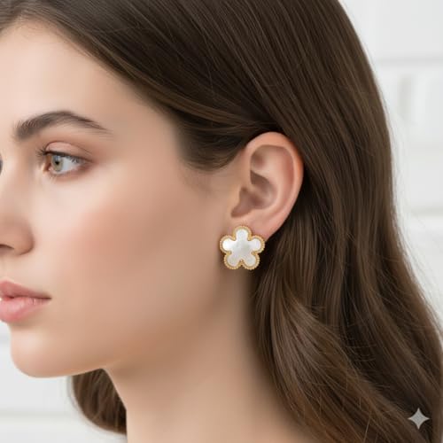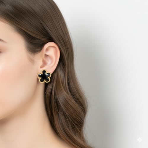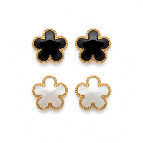 Generic - طقم حلق أقراط ستانلس ستيل زوجين (أبيض وأسود) - تصميم وردة كلاسيكي لون ذهبي ثابت، حلقان صدف مقاومة للصدأ ولا يغير لون ولا تسبب حساسية للنساء والبنات