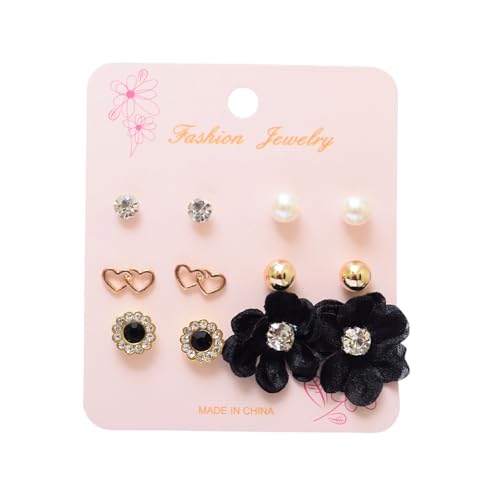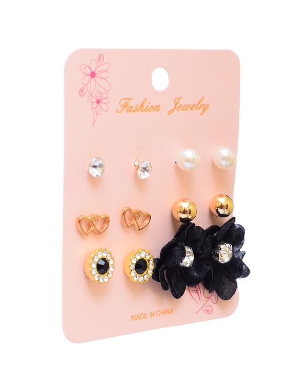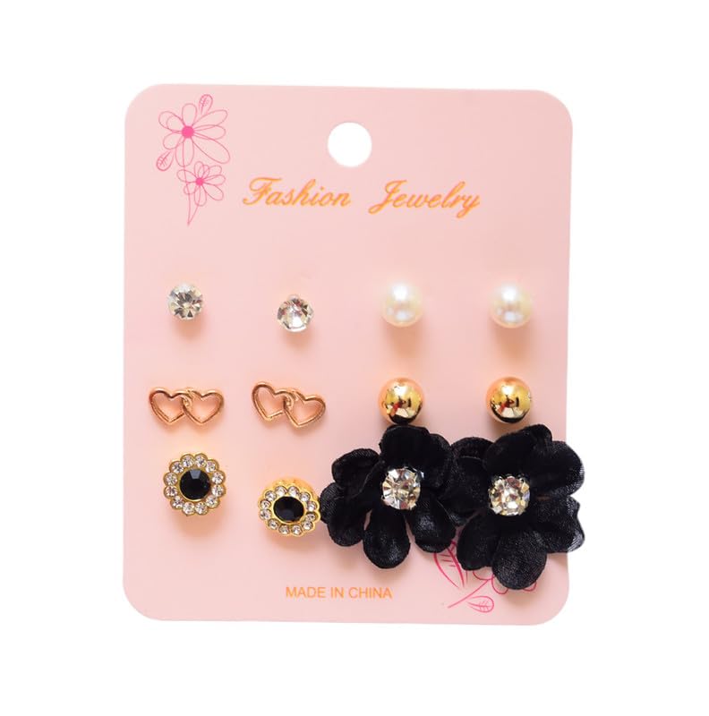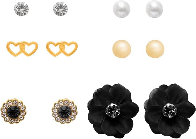 Generic - طقم اقراط ستانلس ستيل 6 قطع - اسود