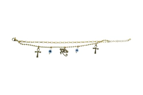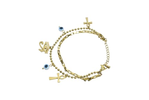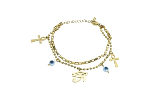 Generic - سوار من الستانلس ستيل مزين برمز مصري وعين الحسد للنساء - ذهبي