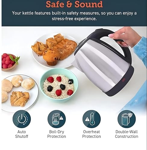 - السلامة هى الأولوية القصوى مع هذه الغلاية الكهربائية، التي تتميز بخاصية الحماية من الغليان الجاف لمنع التلف إذا تم تشغيل الغلاية عن طريق الخطأ بدون ماء. تعمل وظيفة الإغلاق التلقائي عندما يصل الماء إلى نقطة الغليان، مما يقلل من خطر ارتفاع درجة الحرارة أو الحوادث. يضيف مفتاح التشغيل/الإيقاف سهل القراءة وضوء المؤشر مستوى إضافي من الراحة والأمان للاستخدام اليومي.