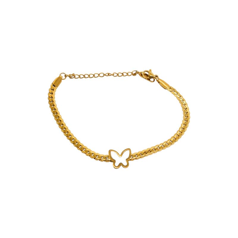 Generic - Stainless Steel Enamel Buterrfly Chain Bracelet For Women - Gold