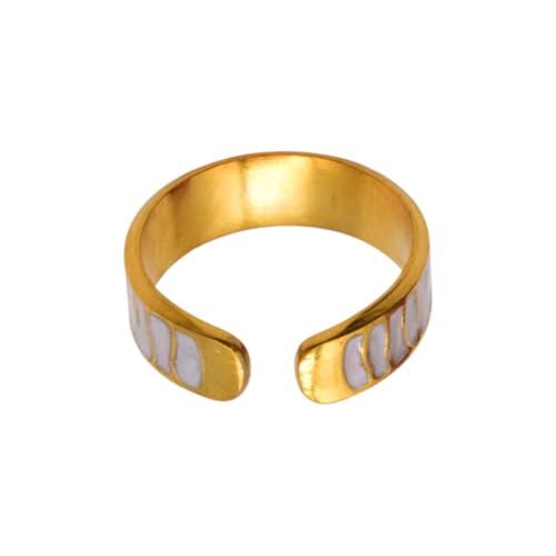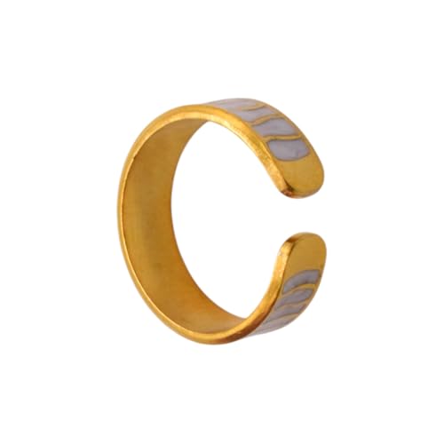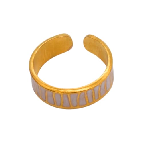 Generic - خاتم للنساء من الستانلس ستيل مطلي بالمينا بتصميم تمساح، مقاس واحد - ذهبي ابيض