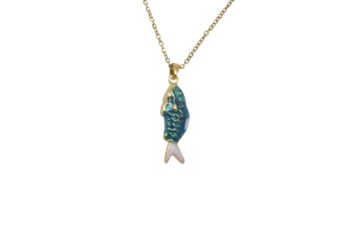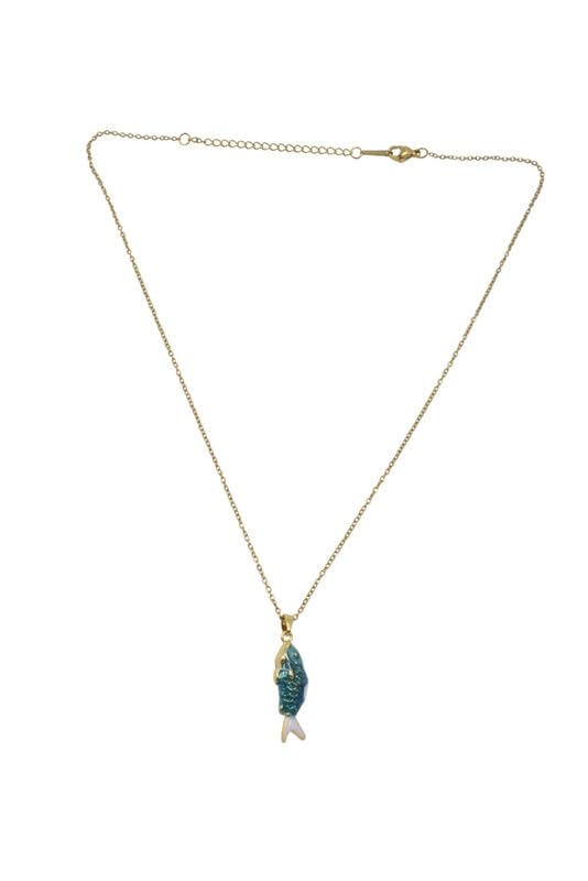 Generic - عقد بقلادة على شكل سمكة من الستانلس ستيل للنساء - ذهبي وازرق مخضر