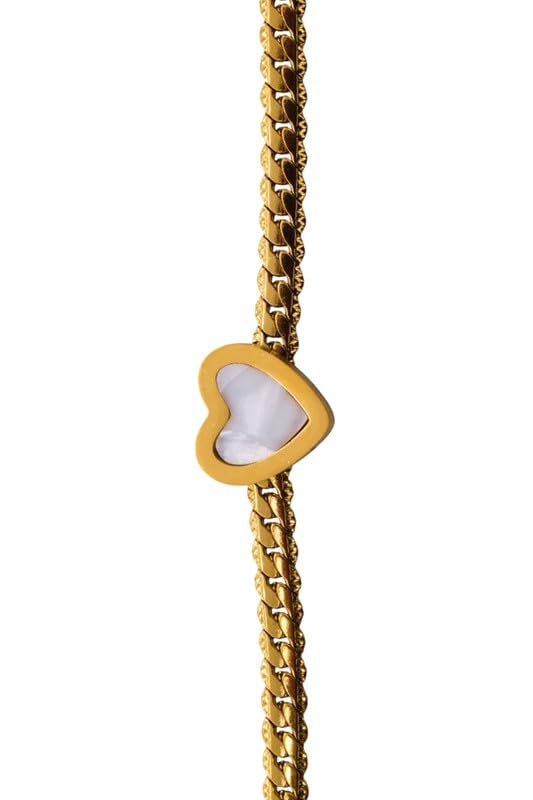 Generic - Stainless Steel Enamel Heart Chain Bracelet For Women - Gold