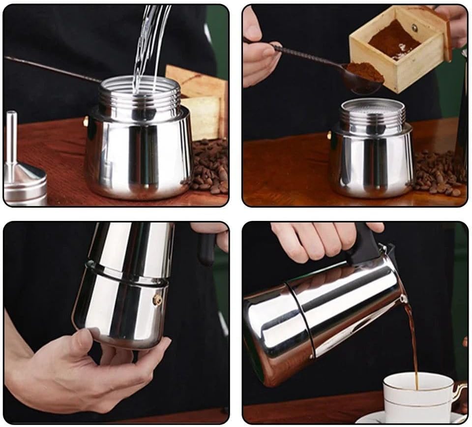 Generic - صانعة قهوة إسبريسو من الستانلس ستيل – ماكينة قهوة موكا بوت إيطالية أصلية للاستخدام على جميع أنواع المواقد – تصميم أنيق متين لتحضير قهوة غنية بالنكهة ( 4 كوب )