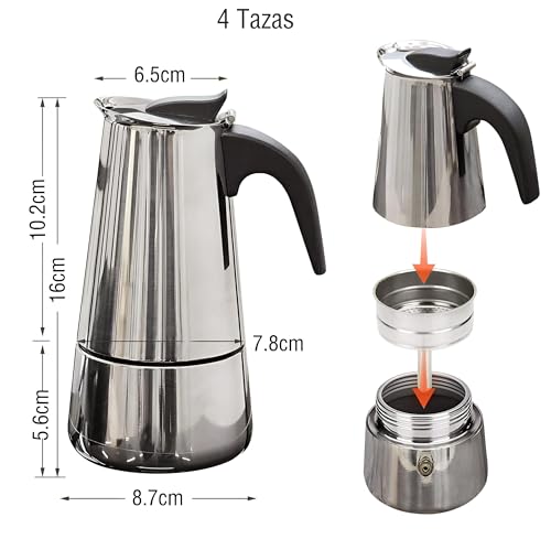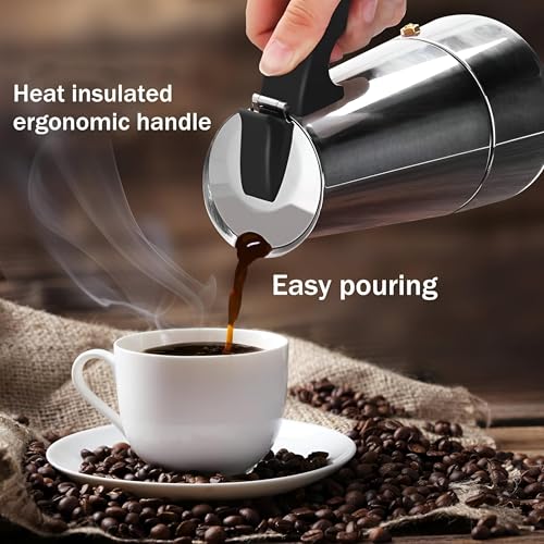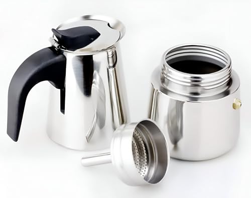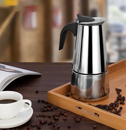 Generic - وعاء اسبريسو من الستانلس ستيل - ماكينة تحضير القهوة الايطالية المتينة مع قبضة مريحة، صيانة حرارية، موديل فضي 4 اكواب
