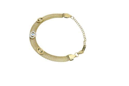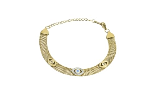 Generic - سوار شبكي من الستانلس ستيل بتصميم عين الحسد للنساء - ذهبي
