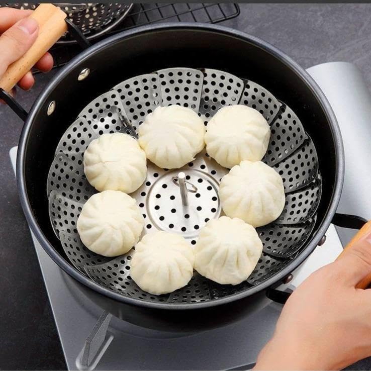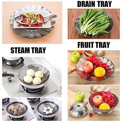 Generic - مصفاة طهي بالبخار قابلة للتمدد من الستانلس ستيل - مناسبة للخضروات والأواني متعددة المقاسات