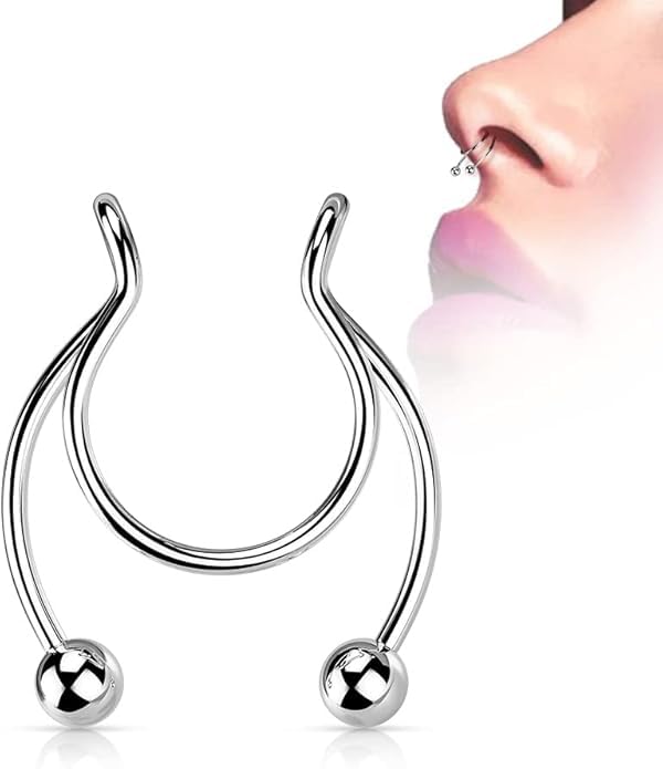 Spaceshoop - حلقات انف مزيفة من الستانلس ستيل، اقراط انف صناعية للشفاه والاذن، اقراط بدون ثقب على الانف، مجوهرات ثقب الجسم